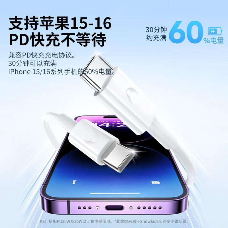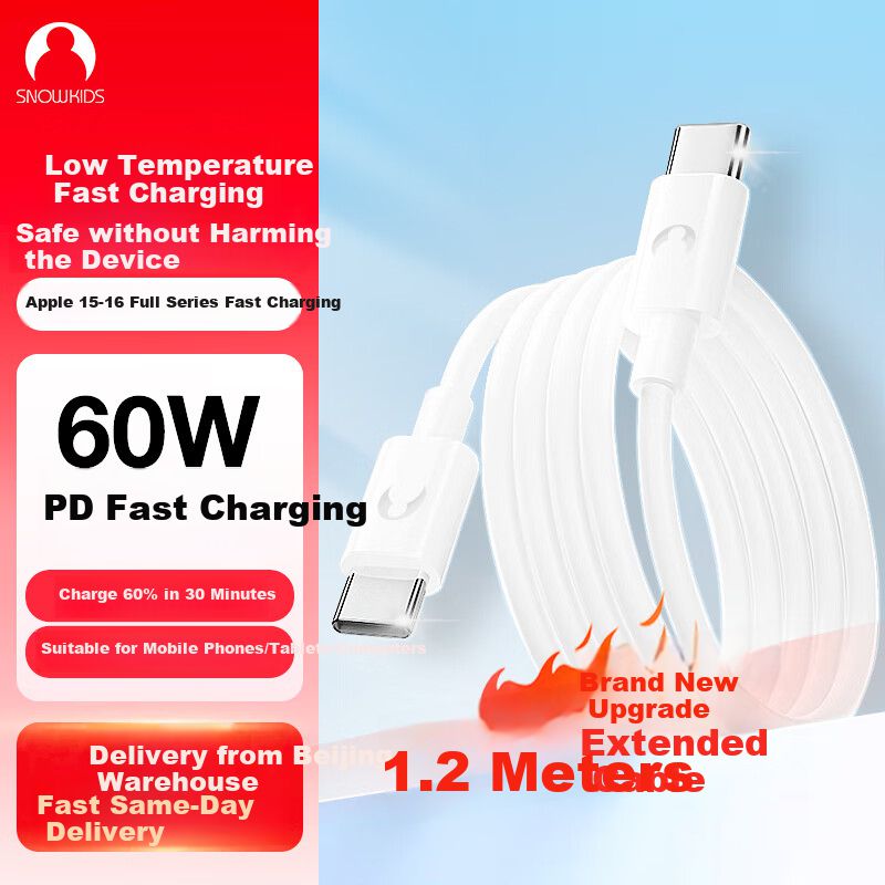 CómputoAccesorios y periféricosCables y AdaptadoresCable Snowkids USB-C a USB-C PD60W Negro