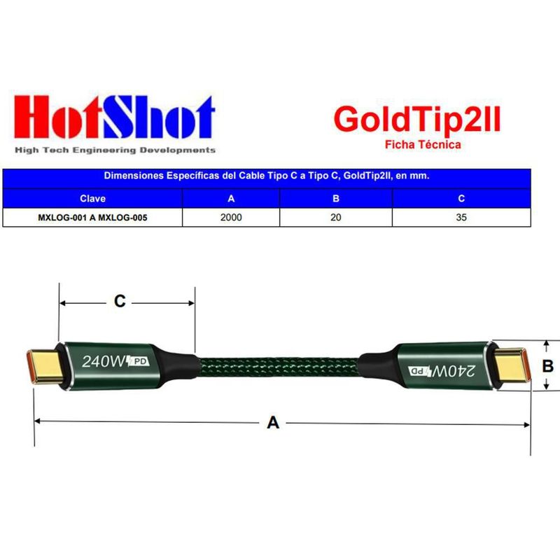 Cable Tipo C 2m 240W GoldTip2II MXLOG-001 Cable de transferencia 240 Mbps