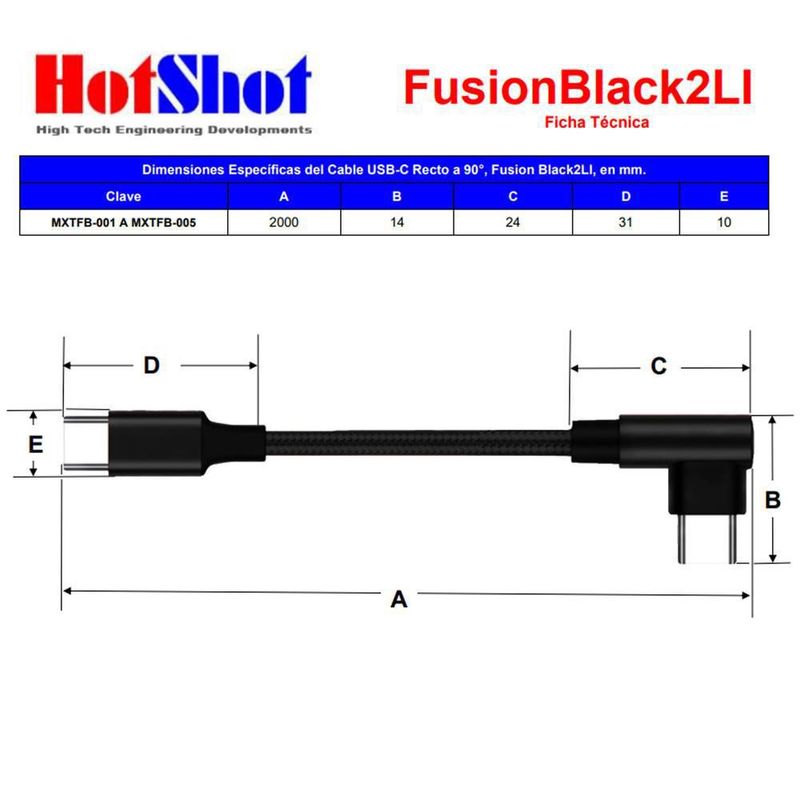 Cable Tipo UBS-C 2m Negro FusionBlack2LI MXTFB-005 Cable de entrada USB-C