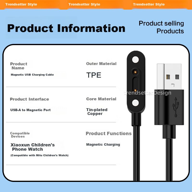 CómputoAccesorios y periféricosCables y AdaptadoresCable Trendsetter USB-A a magnético Negro
