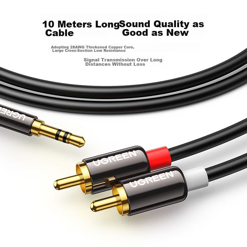 Cable UGREEN AV116 3.5 mm a 2 RCA Negro