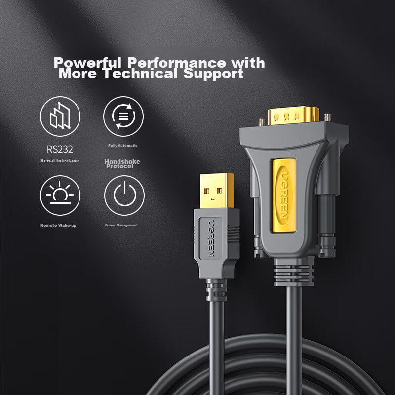 Cable UGREEN CR104 USB a RS232 DB9 Macho Negro