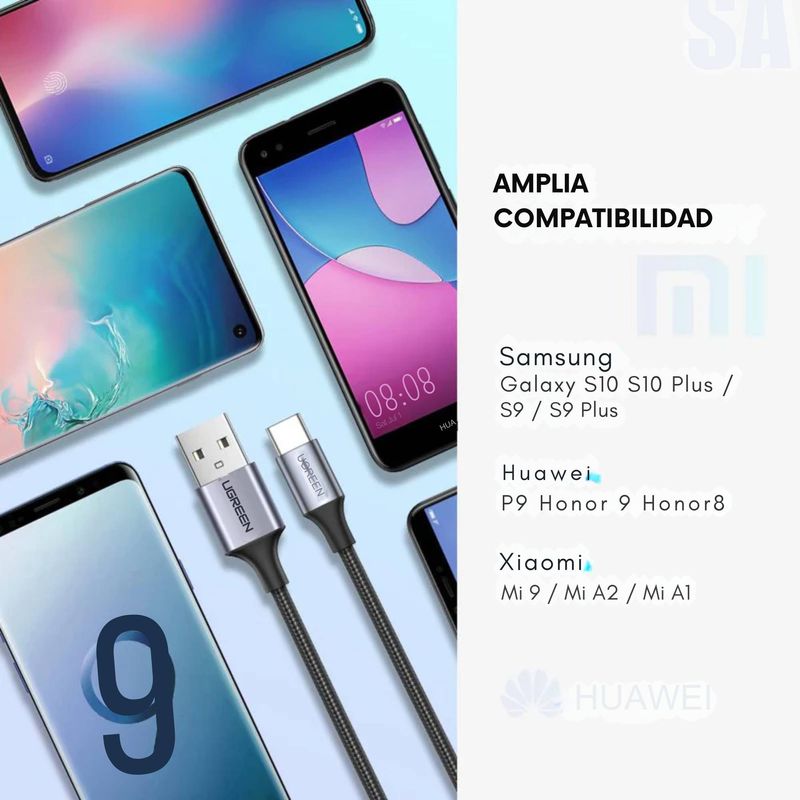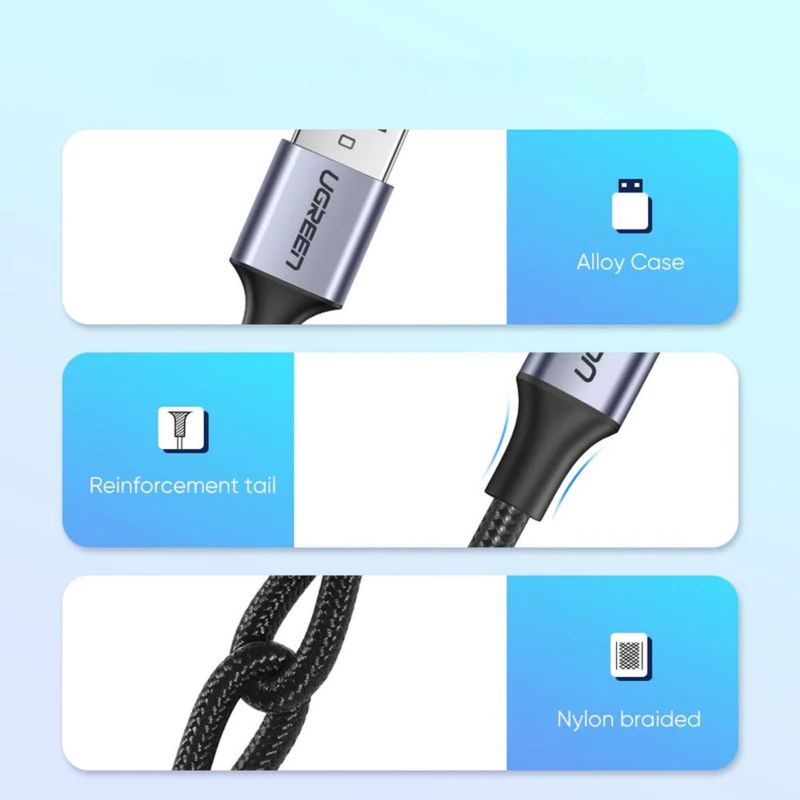 TelefoníaAccesorios para celularesCablesCable USB-A a Tipo C Ugreen Reforzado con Nylón de 2m Negro