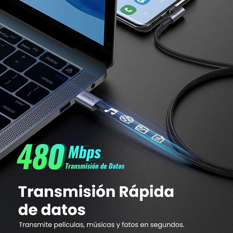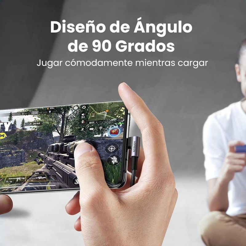 Cable Usb C 90 Grados 2m Ugreen 18W Carga Rápida Gris