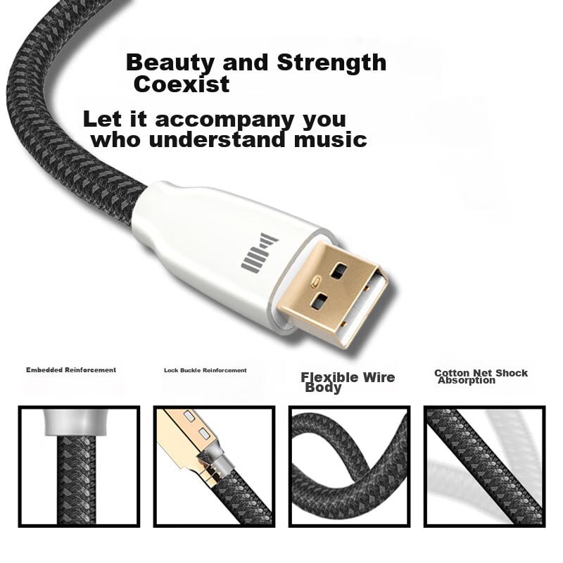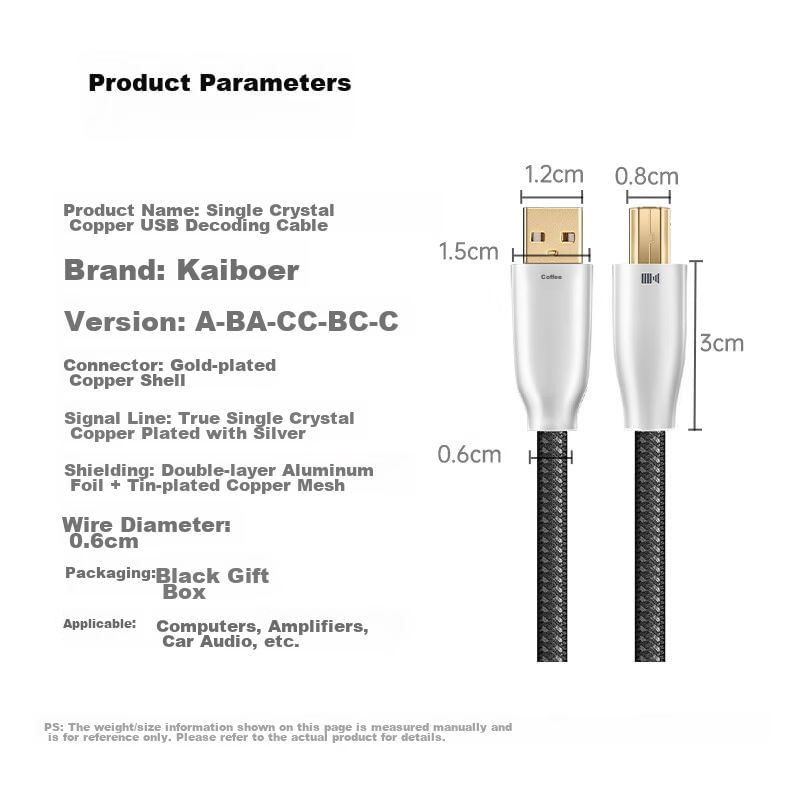 Cable USB Kaiboer 6N Tipo A a Tipo B Plata 1m