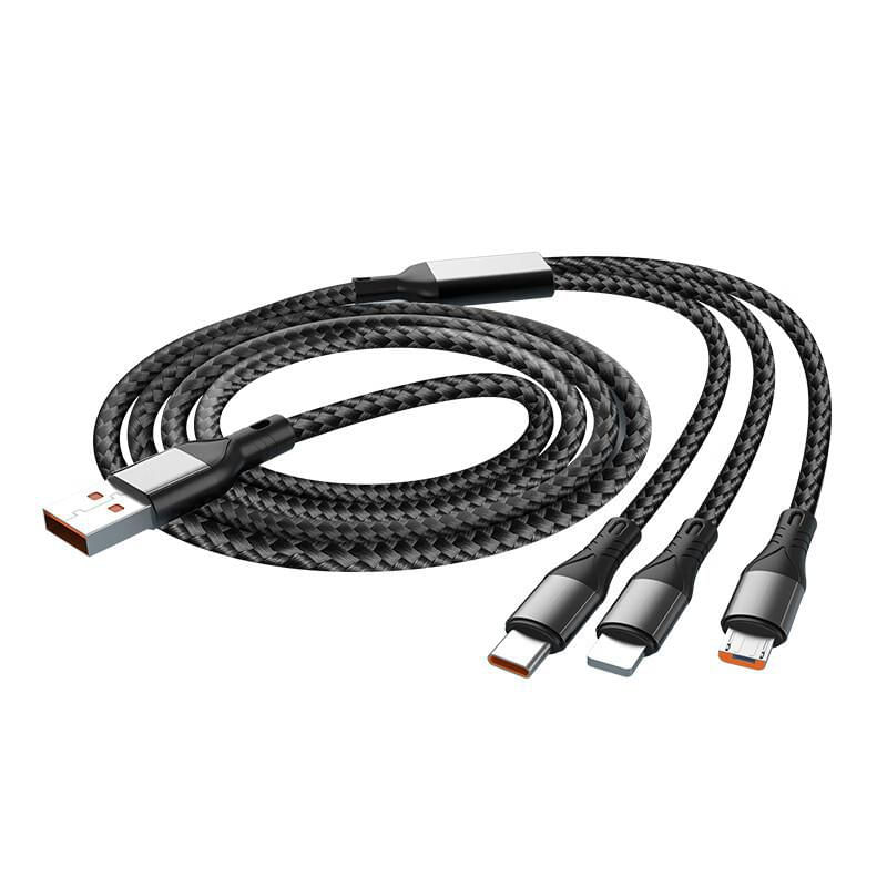 Cable Zitai 3 en 1 Tipo C Lightning Micro USB Negro