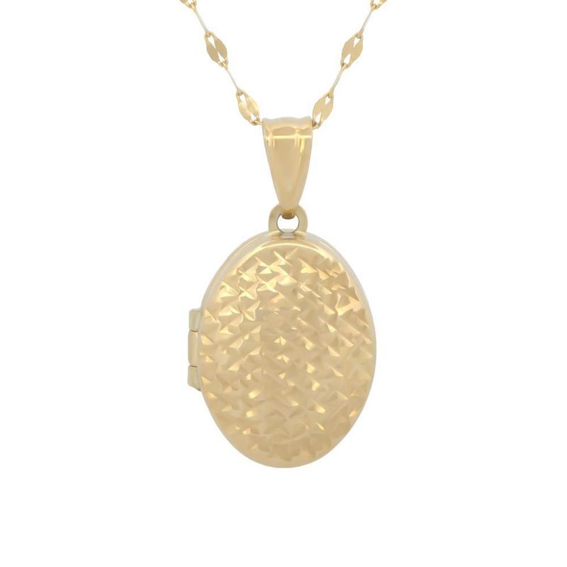 Moda y accesoriosJoyeríaCollares y DijesCadena con dije relicario oval facetado oro sólido 14k