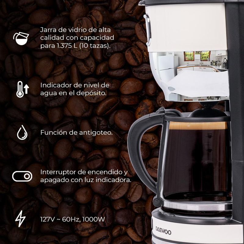 Línea blancaElectrodomésticosCafeteras y TeterasCafetera Automática Daewoo 10 tazas filtro reutilizable