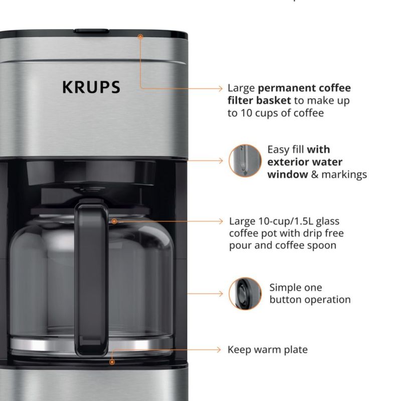 Línea blancaElectrodomésticosCafeteras y TeterasCafetera KRUPS Simply Brew 10 tazas de acero inoxidable de 900 W