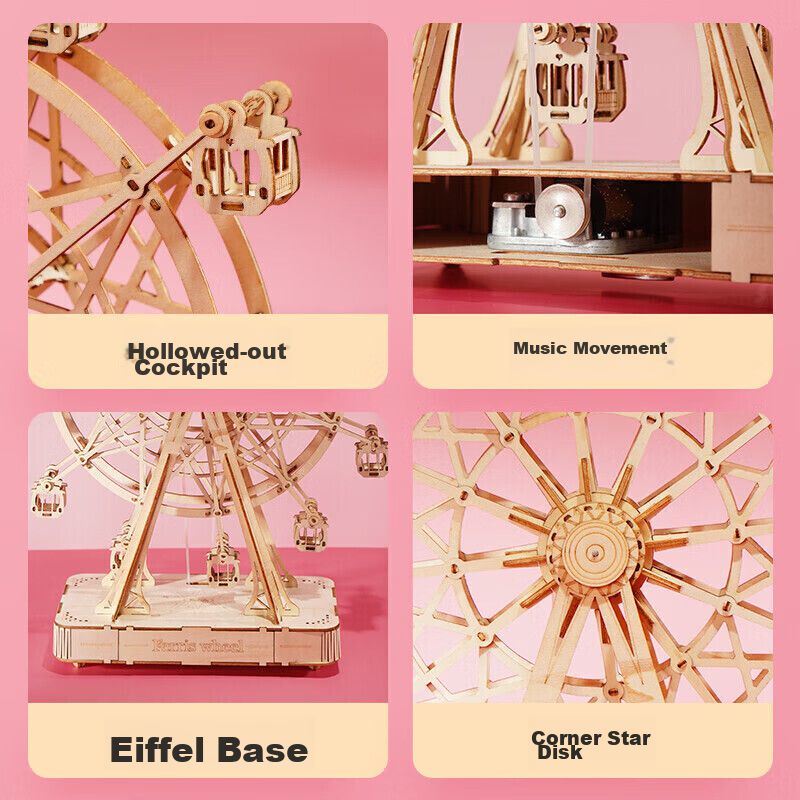 Caja de música con noria RUOTAI de madera para niños