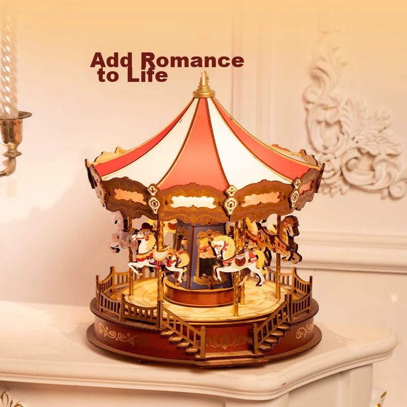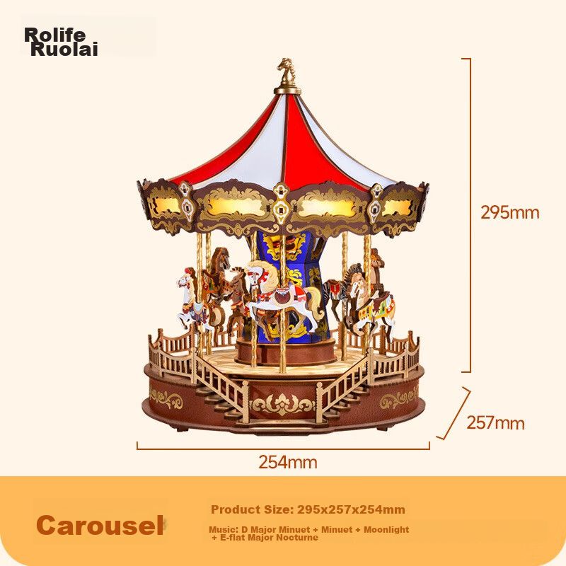 Caja de música ROLIFE SOÑADOR de madera con carrusel y luces