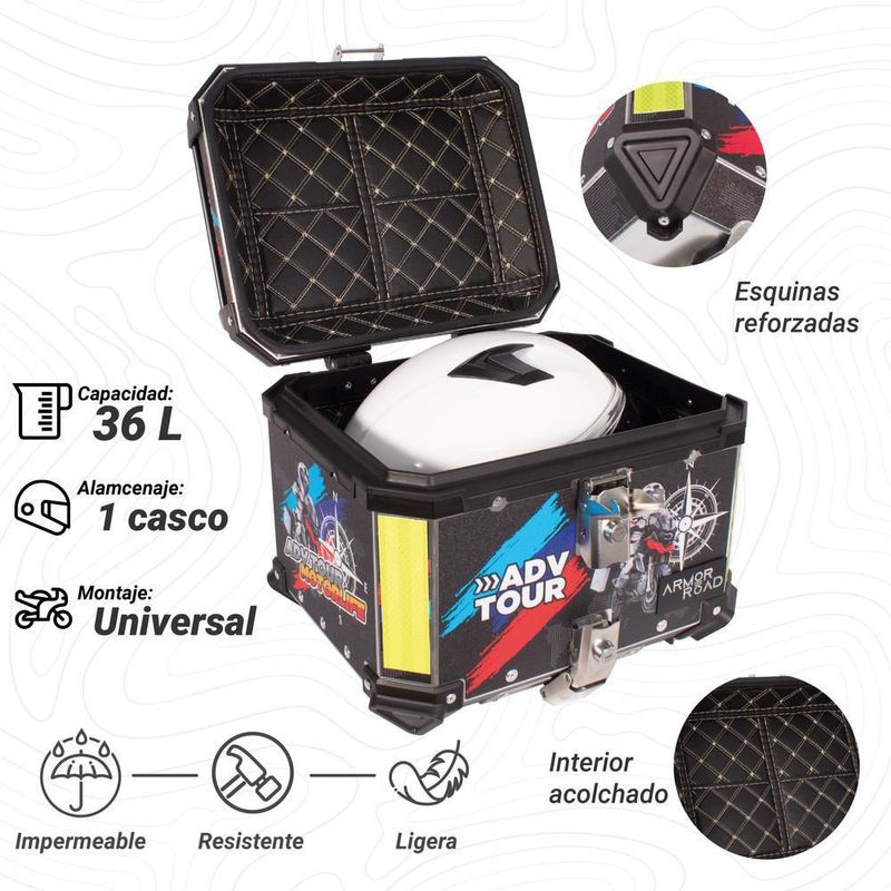 Caja trasera maleta top case aluminio 36l acojinado universal