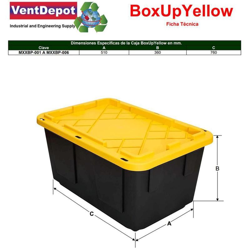 Cajas de Plástico Reforzada MXXBP-003 BoxUpYellow Caja Organizadora Durabilidad