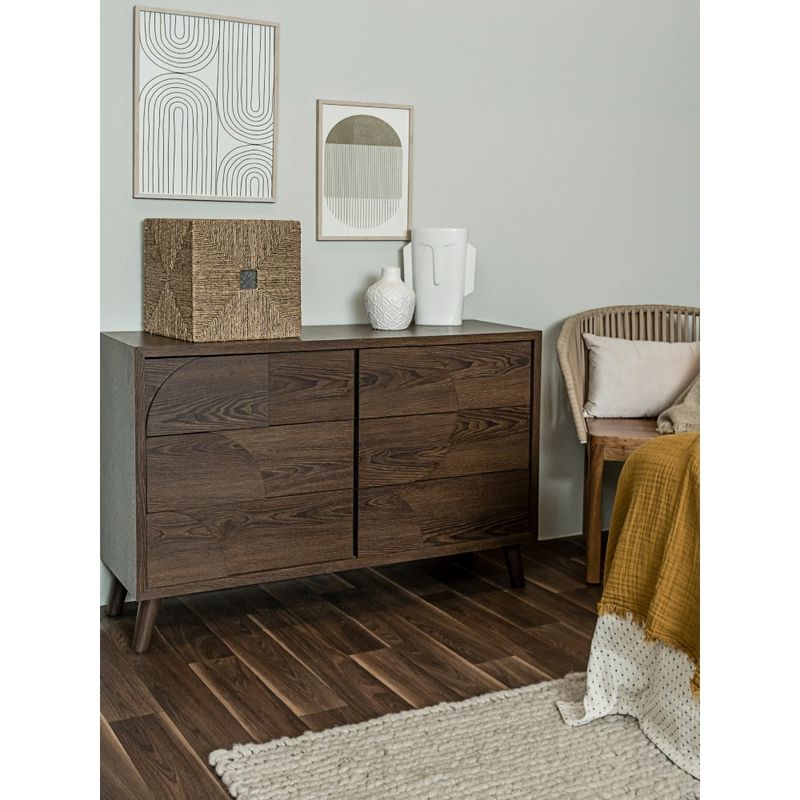 MueblesRecámaraCajoneras y CómodasCajonera de 6 Cajones con Relieve Decorativo de Madera y Estructura de Madera Industrial
