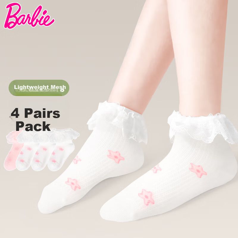 RopaRopa de NiñaRopa Interior y PijamasCalcetas cortas BARBIE algodón Blanco con encaje para niña