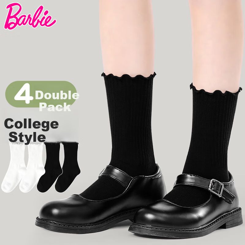 RopaRopa de NiñaRopa Interior y PijamasCalcetines BARBIE cortos algodón Negro y Blanco para niña