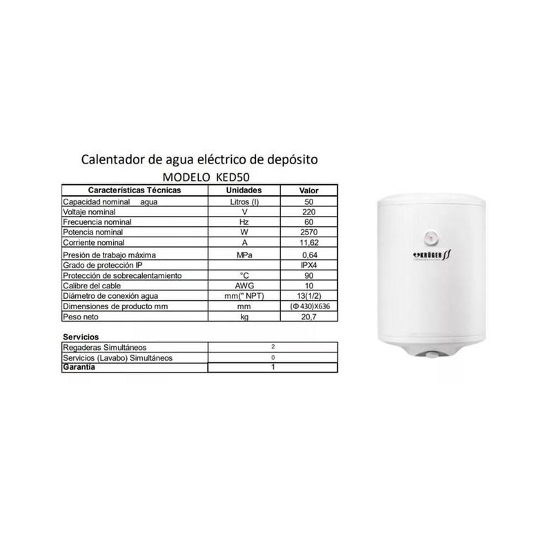 Calentador De Agua Eléctrico Kruger Ked50 Depósito 50 Lts