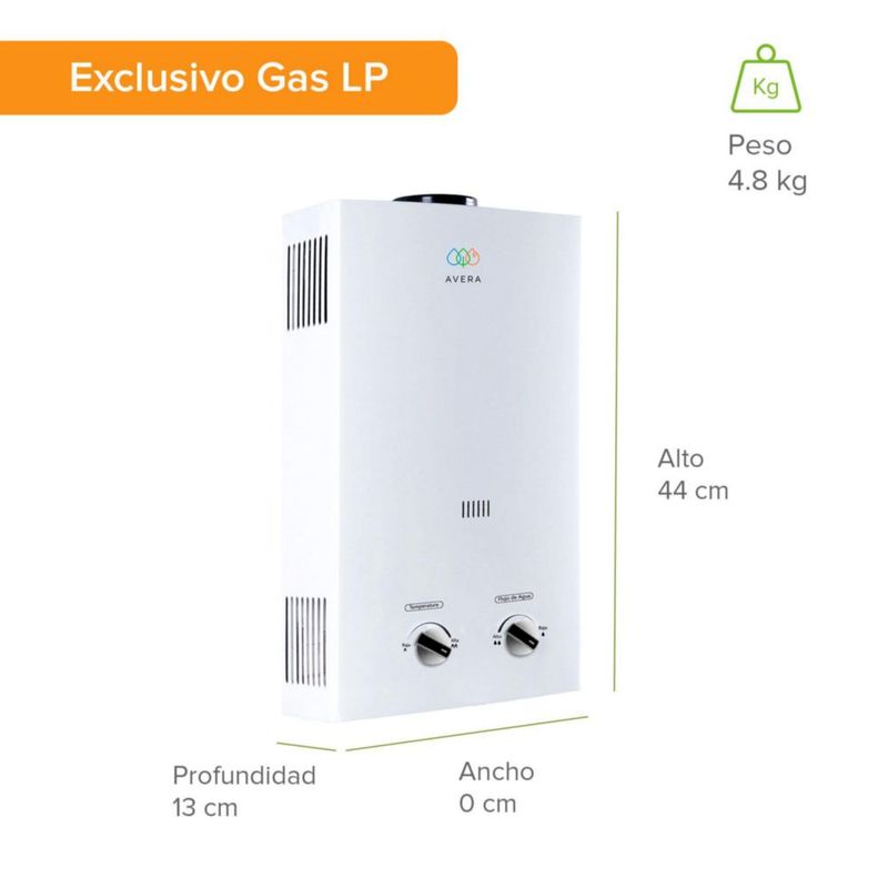 Calentador de agua instantáneo para gas LP 6L 1 Servicio AVERA C6L