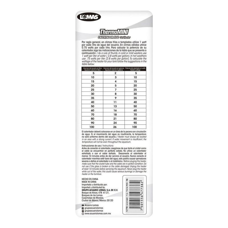 MascotasPecesAccesoriosCalentador Fijo Mini 50w
