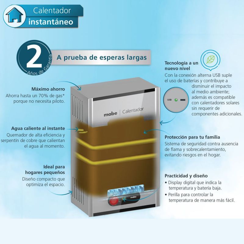 Línea blancaBoilersInstantáneoCalentador Instantáneo a Gas Natural Mabe CIM102SNA