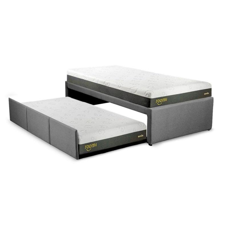 Cama doble Individual Roomi Gris + 2 Colchones Smile