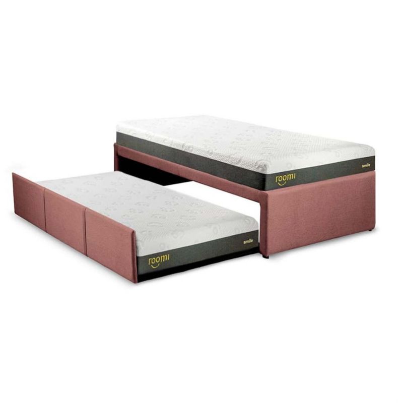 Cama doble Individual Roomi Rosa + 2 Colchones Smile
