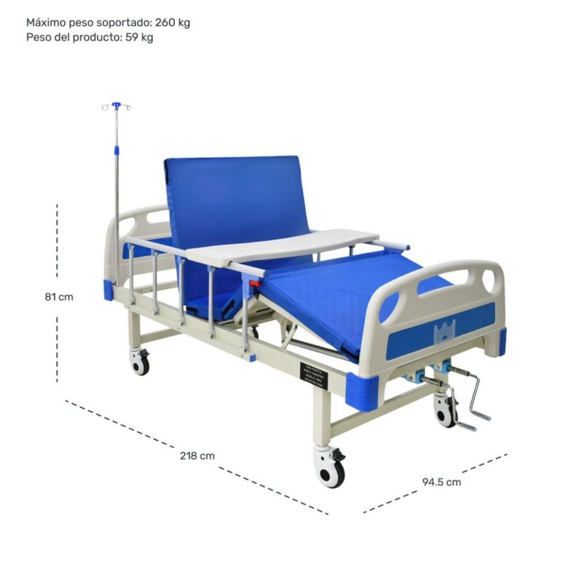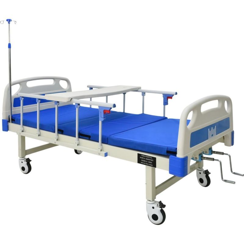 Cama Hospitalaria Manual + Barandal Mesa Porta Suero Colchon Nanofort