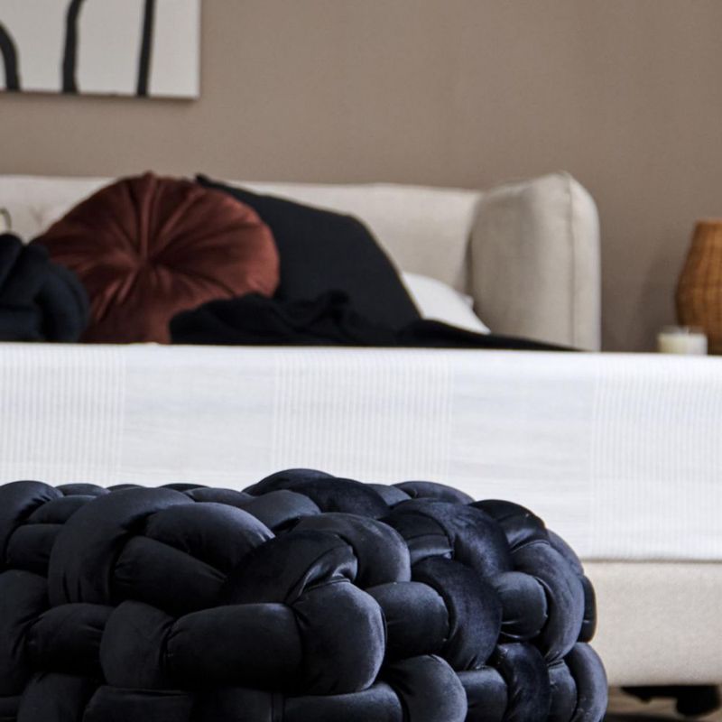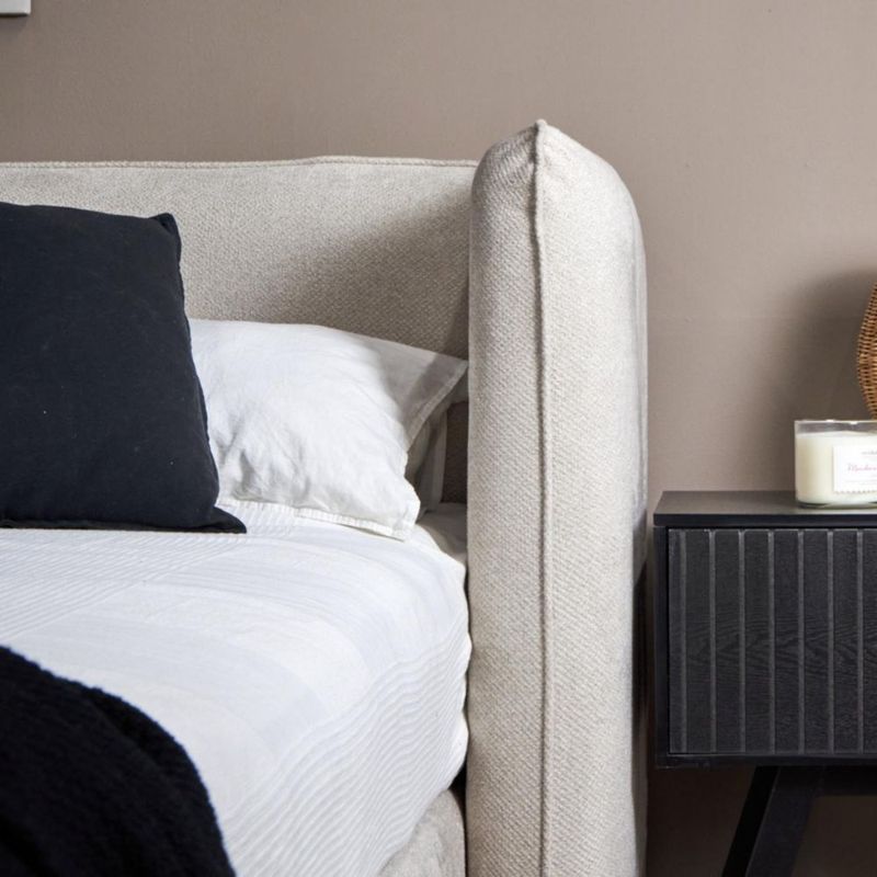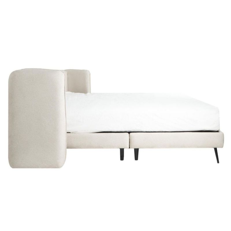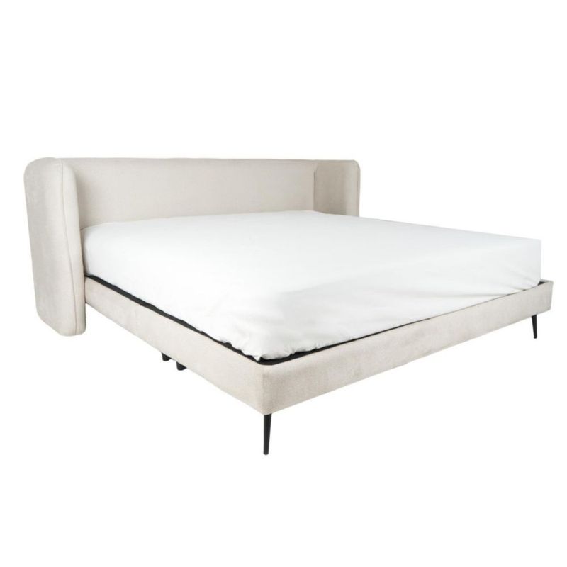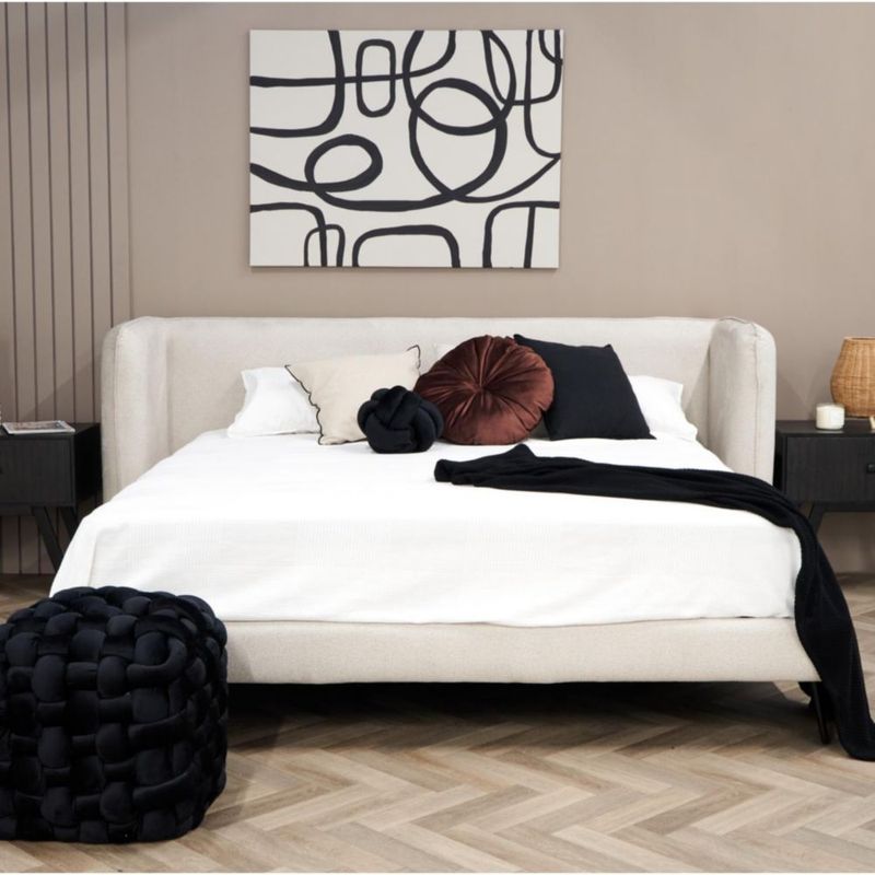 Cama Matrimonial con Cabecera y Base Beige en Tela Premium. Rellena de Hule Espuma y Estructura de Madera Maciza