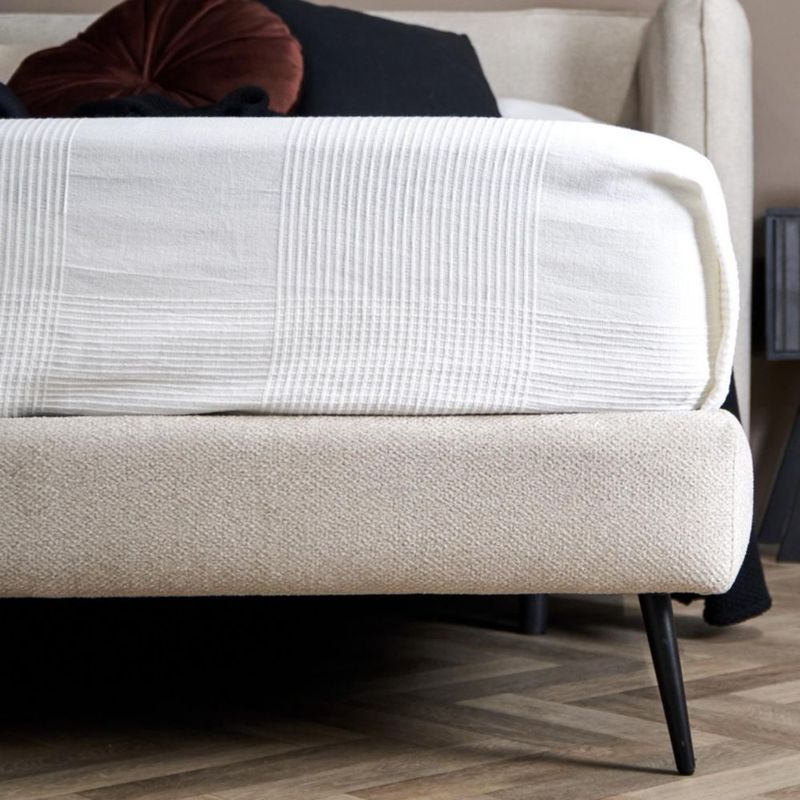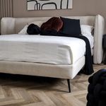 MueblesRecámaraCamasCama Matrimonial con Cabecera y Base Beige en Tela Premium. Rellena de Hule Espuma y Estructura de Madera Maciza