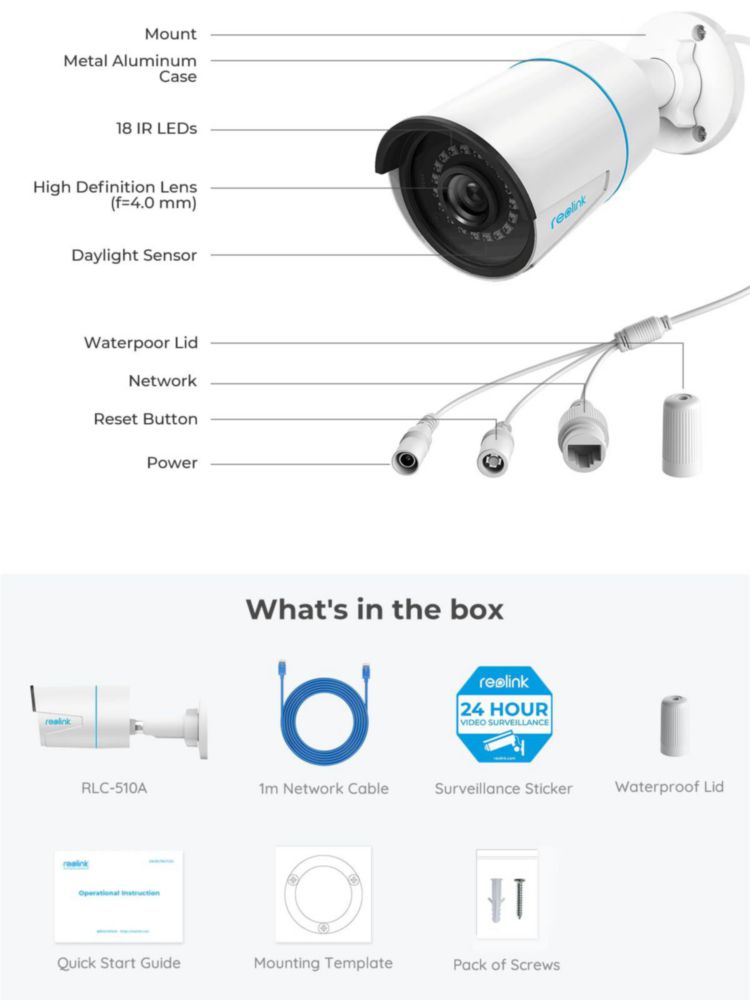 ElectrónicaCámarasDe SeguridadCámara de seguridad REOLINK Bullet PoE IP RLC-510A de 5 MP