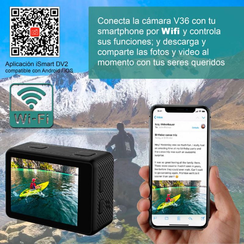 CAMARA DIGITAL DEPORTIVA V36 DOBLE PANTALLA 5K WIFI c AGUA