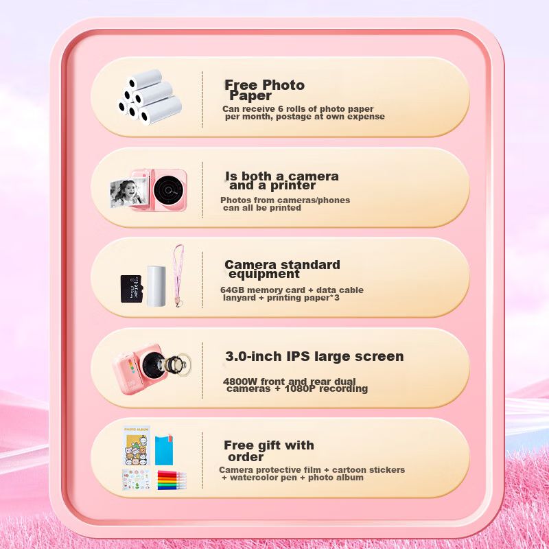 Cámara Instantánea CARLBABY 1 pieza HD con impresión, ecológica, para niños y niñas