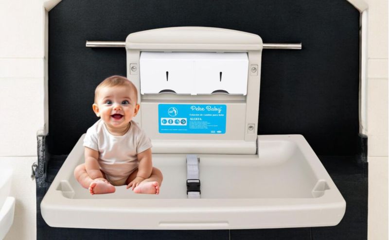 Cambiador de Pared Rígido para Bebé Color Gris, Ahorra Espacio PEKE BABY