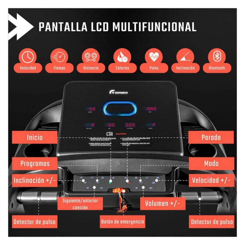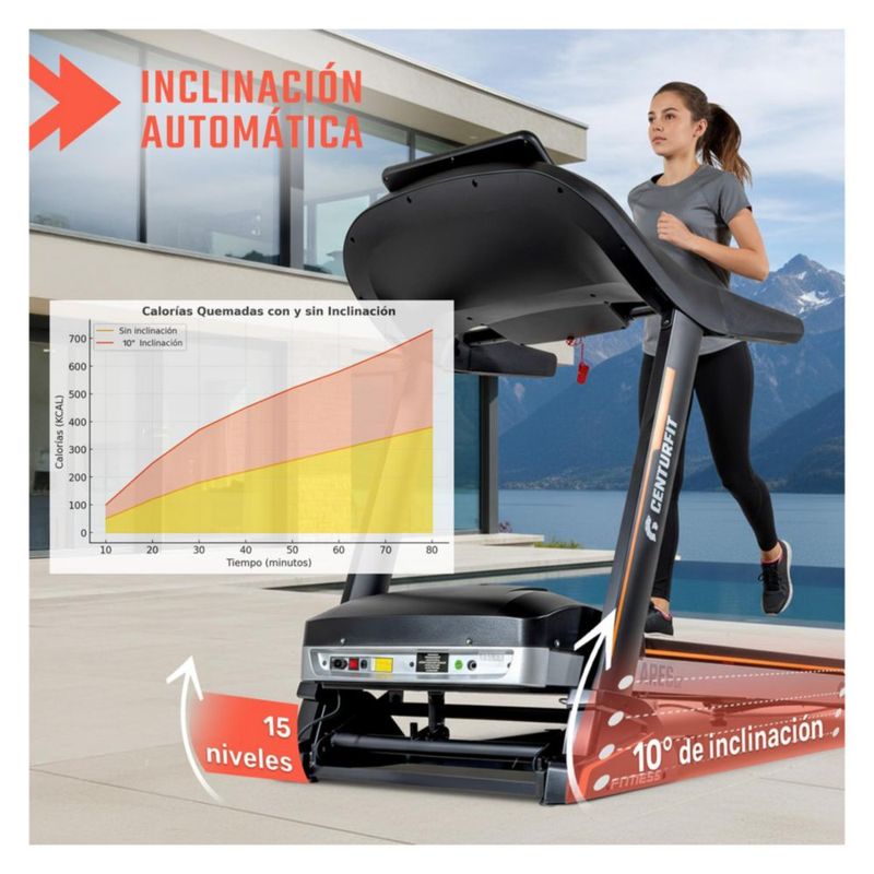 Caminadora Electrica Centurfit con 15 Niveles de Autoinclinacion y 15 Programas de Entrenamiento Plegable Fitness Hogar Moderna Alta Calidad