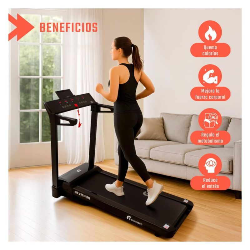 Caminadora Electrica Centurfit Sistema Plegable Poder de 3hp Velocidad 16km/h Inclinacion Automatica 15 Niveles Conexion Bluetooth 12 Programas