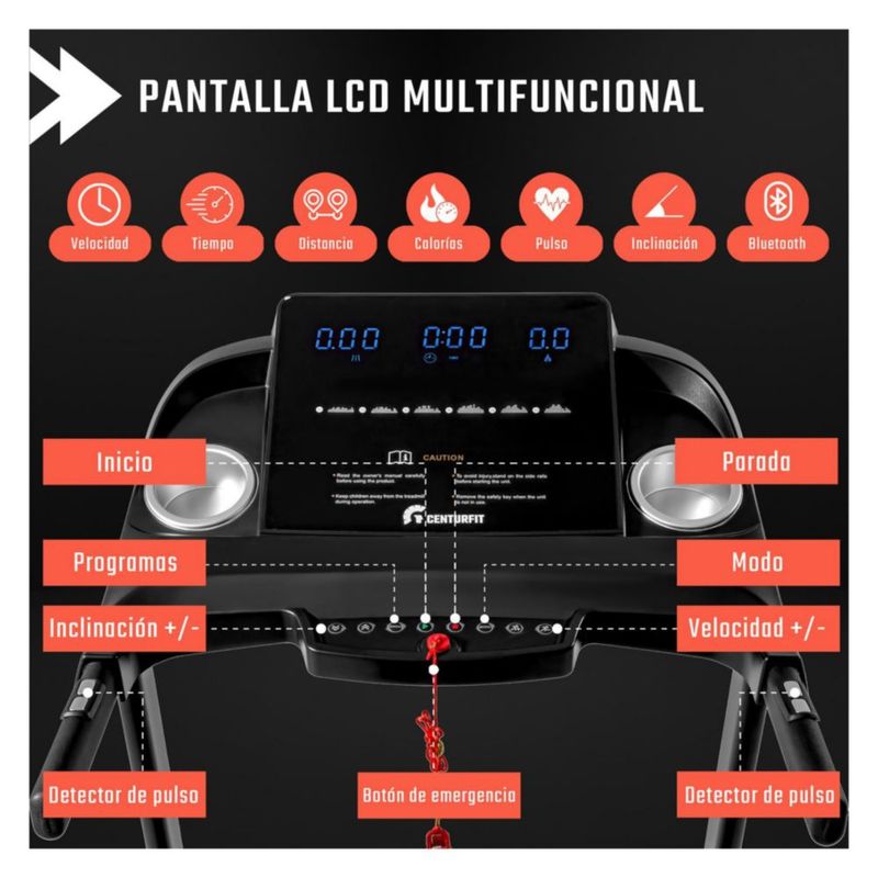 Caminadora Electrica Centurfit Touch Plegable con 15 Niveles de Inclinacion Automatica Conexion App Bluetooth Fitness Hogar Moderna y de Alta Calidad