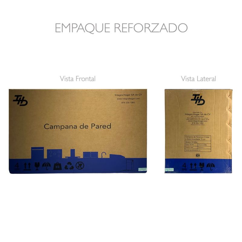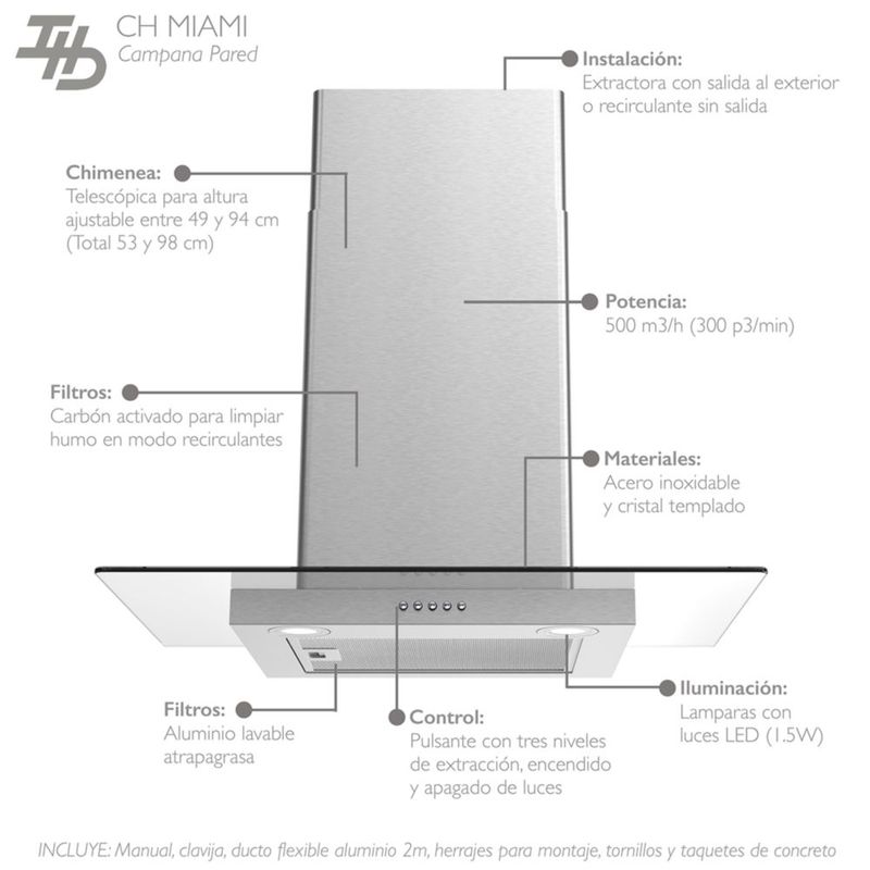 Campana de Pared Ajustable IHD CH MIAMI 30 de 75 cm en Acero Inoxidable y Cristal Recto