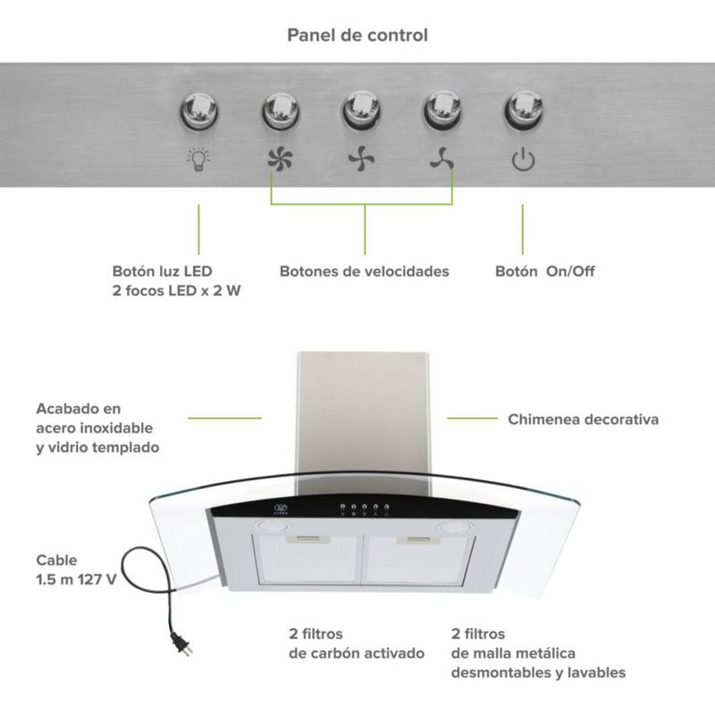 Campana Extractora Avera 76cm Acero Inoxidable y Vidrio curvo CEV60C