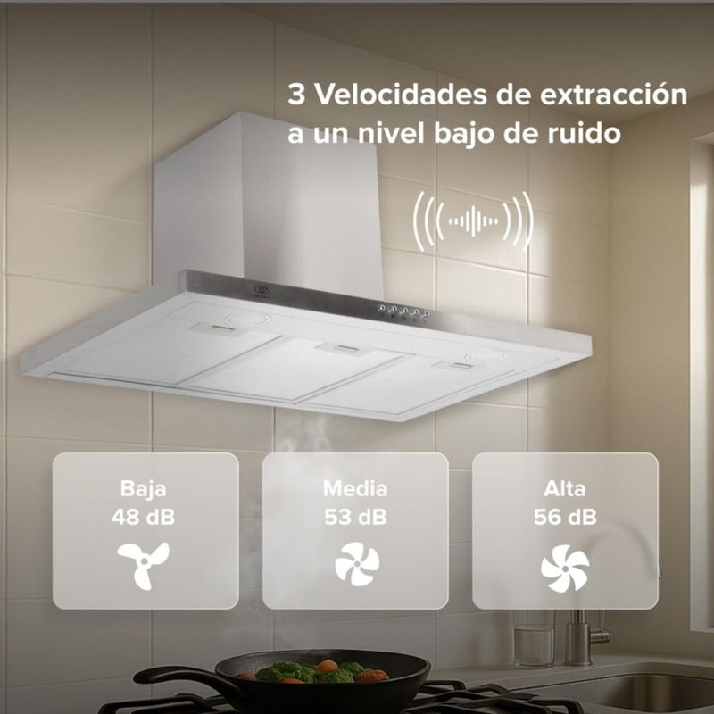 Línea blancaCocinaCampanasCampana Extractora 76cm de Acero Inoxidable Tipo T AVERA CEV60B