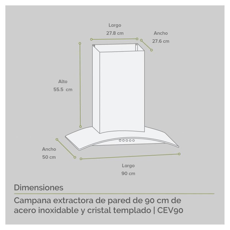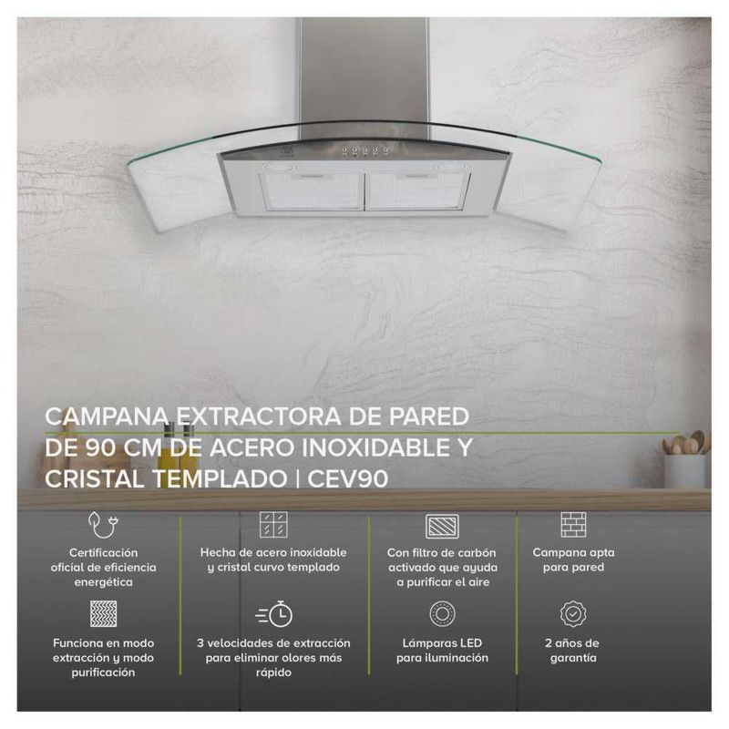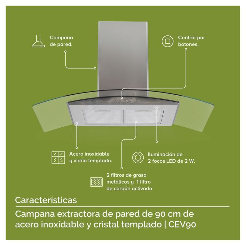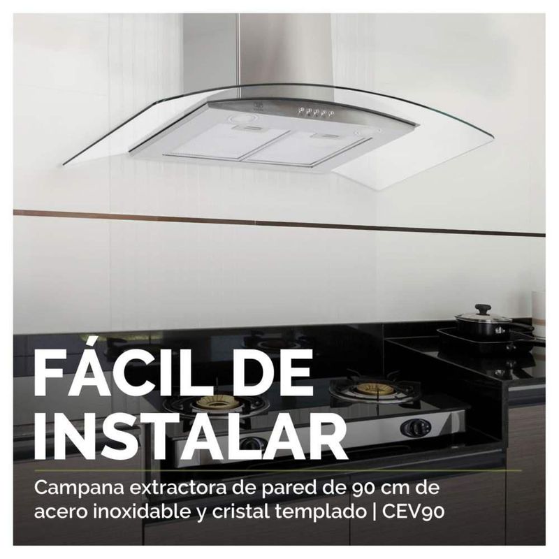 Línea blancaCocinaCampanasCampana Extractora Avera 90cm Acero Inox Y Vidrio CEV90