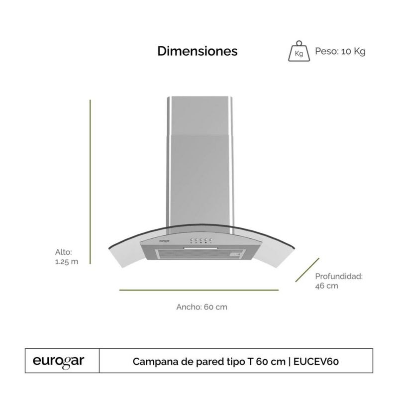 Campana extractora de pared diseño curvo 60 cm Luz LED Eurogar EUCEV60