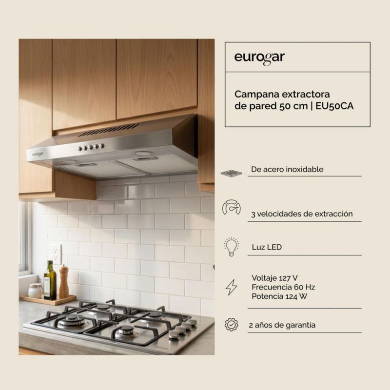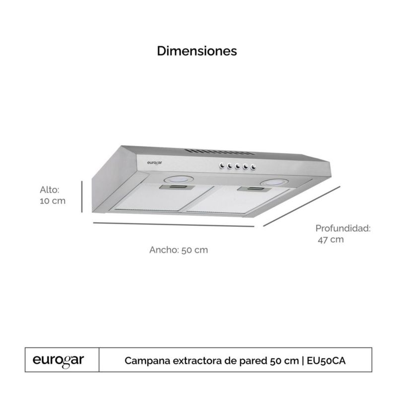 Campana Extractora de Pared 50 cm Bajo Alacena Acero EUROGAR EU50CA