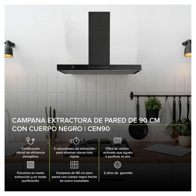Línea blancaCocinaCampanasCampana para Cocina de Pared Temp Digital Avera CEN90