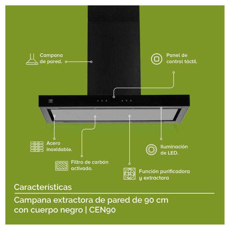 Campana para Cocina de Pared Temp Digital Avera CEN90