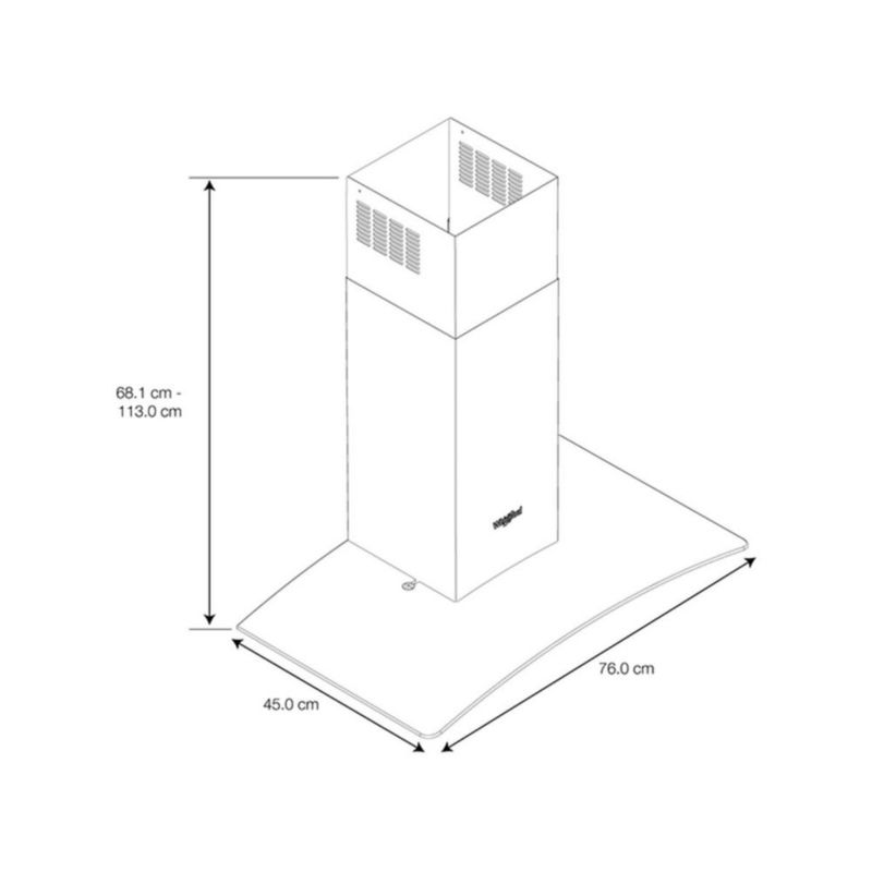 Campana Pared Whirlpool WHW7610S 76 cm Purificadora Acero Inox Cristal