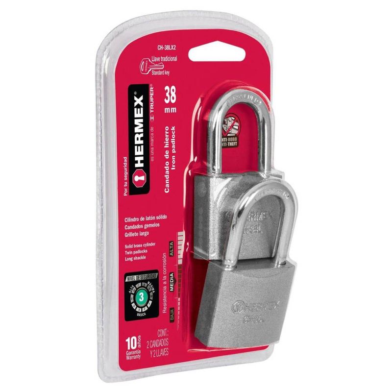 HerramientasCerrajería y SeguridadCandadosCandados De Hierro 38mm Largo 2 Piezas Hermex