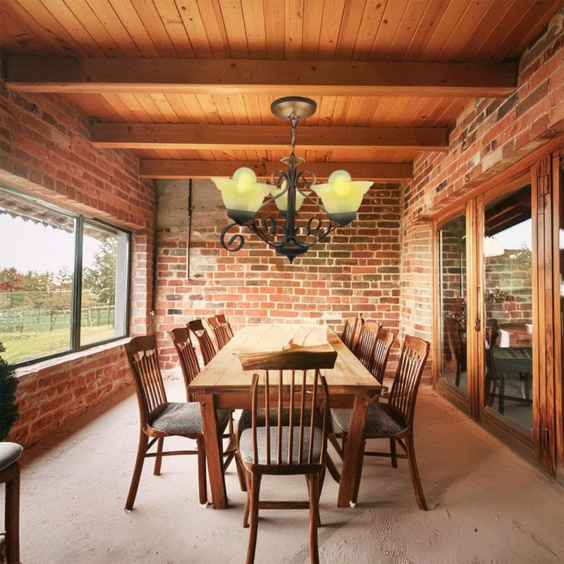 Candil De Techo, Luz Ideal, C11 Herrería Chocolate Pantallas Mármol.