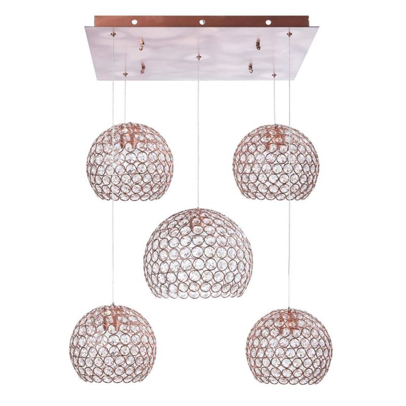 Candil Globo de 5 luces cristal cortado High Quality k9 de Alto Brillo