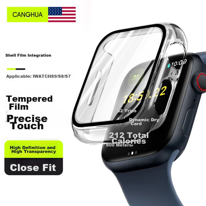 TelefoníaWearablesAccesorios para SmartwatchCarcasa Protectora De Vidrio Templado Canghua Para Apple Watch S8/S7 41Mm/45Mm Transparente/Negro