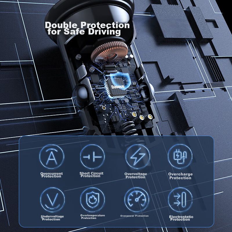Cargador De Coche Baseus Ccall-Yd01 Dual Usb 30W 5A Negro